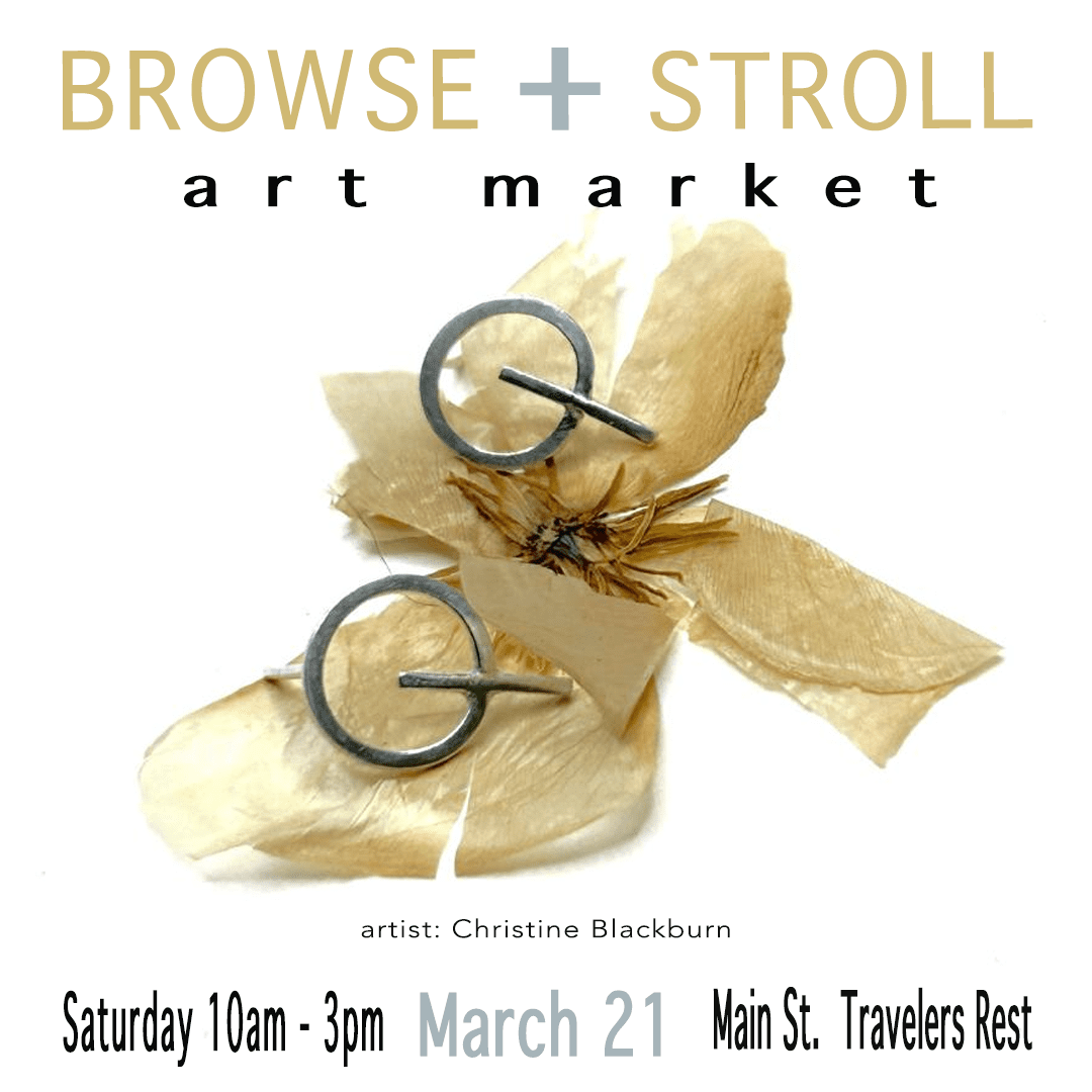 Browse + Stroll art market thoughtfully stages 70 artists in four separate, easy-to-access sites in Travelers Rest, along the Swamp Rabbit Trail and Main Street. These pedestrian-friendly exhibits focus on